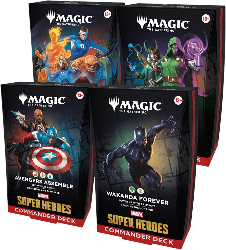 Commander decks are ready to play right out of the box and contain everything you need to play Magic’s most popular multiplayer format. Magic: The Gathering | Marvel Super Heroes features four different Commander deck versions.